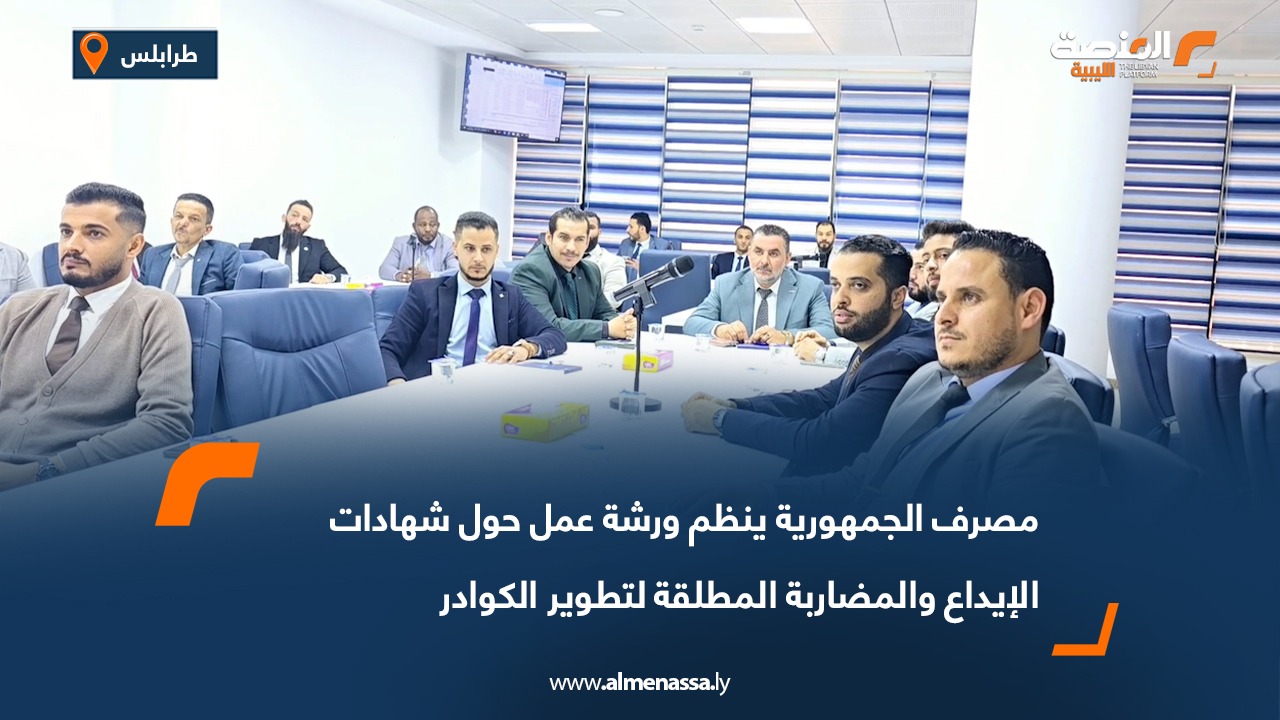محليات مصرف الجمهورية ينظم ورشة عمل حول شهادات الإيداع والمضاربة المطلقة لتطوير الكوادر اقرأ المزيد » 2026-04-07