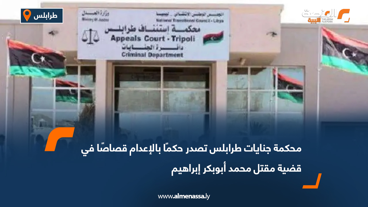 أمني وعسكري محكمة جنايات طرابلس تصدر حكمًا بالإعدام قصاصًا في قضية مقتل محمد أبوبكر إبراهيم اقرأ المزيد » 2026-03-14
