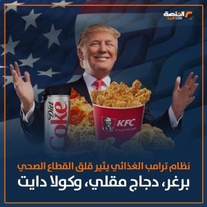إنفوجراف نظام ترامب الغذائي يثير قلق القطاع الصحي برغر، دجاج مقلي، وكولا دايت اقرأ المزيد » 2025-05-24