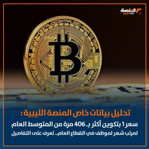 إنفوجراف تحليل بيانات خاص المنصة الليبية: سعر 1 بتكوين أكثر بـ 406 مرة من المتوسط العام لمرتب شهر لموظف في القطاع العام.. تعرف على التفاصيل اقرأ المزيد » 2025-05-31