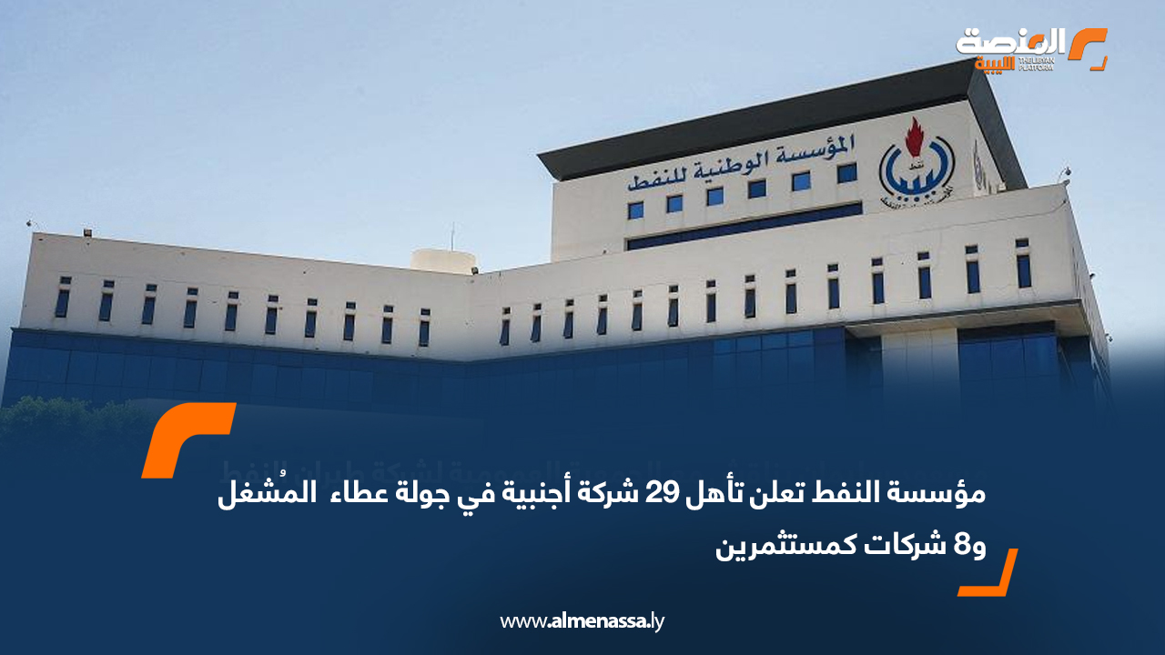 اقتصاد مؤسسة النفط تعلن تأهل 29 شركة أجنبية في جولة عطاء ” المُشغل” و8 شركات كمستثمرين اقرأ المزيد » 2025-07-22