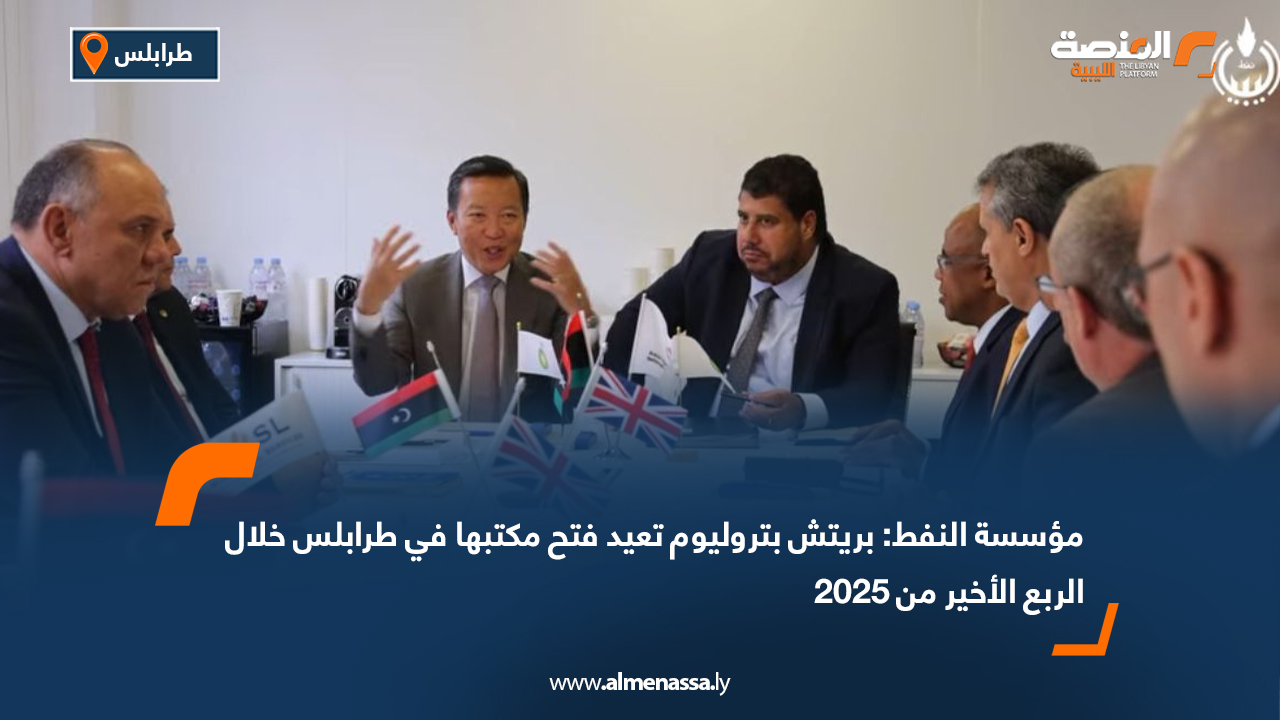اقتصاد مؤسسة النفط: بريتش بتروليوم تعيد فتح مكتبها في طرابلس خلال الربع الأخير من 2025 اقرأ المزيد » 2025-07-08