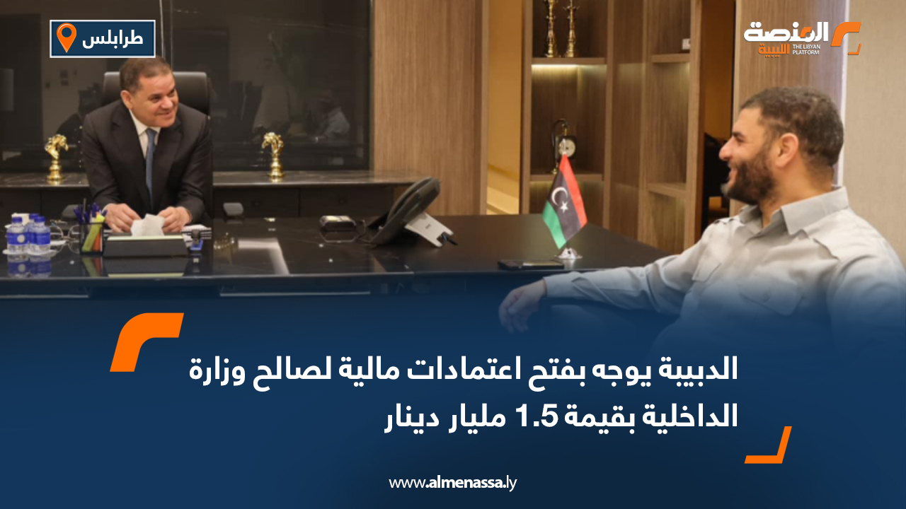 اقتصاد الدبيبة يوجه بفتح اعتمادات مالية لصالح وزارة الداخلية بقيمة 1.5 مليار دينار اقرأ المزيد » 2025-07-06