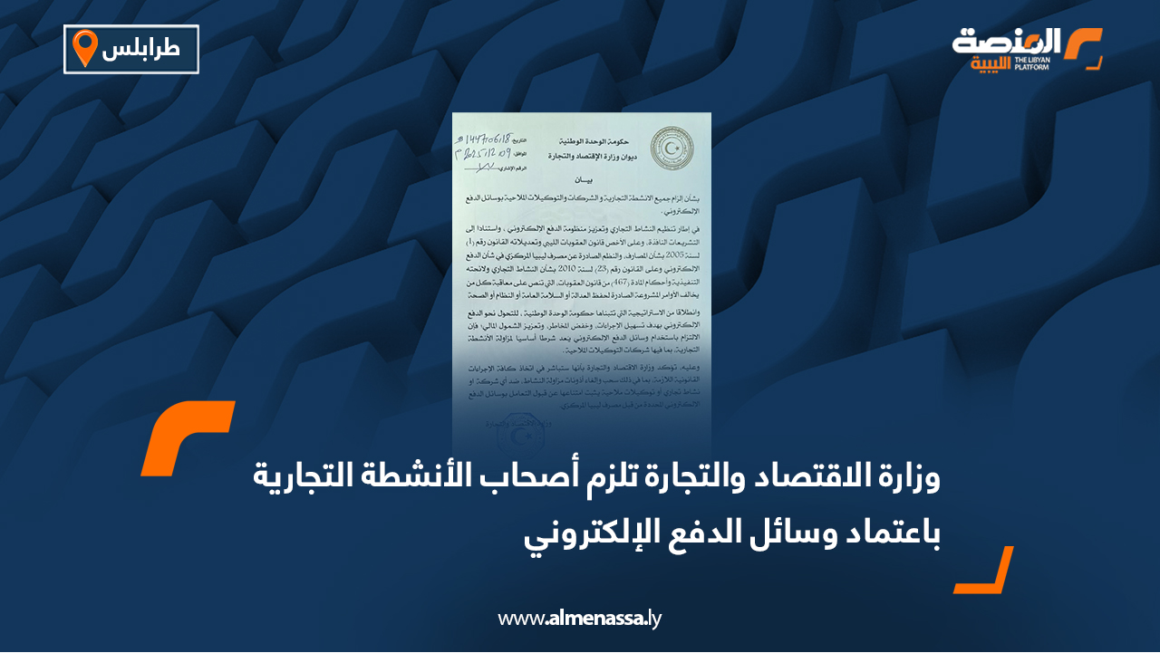 اقتصاد وزارة الاقتصاد والتجارة تلزم أصحاب الأنشطة التجارية باعتماد وسائل الدفع الإلكتروني اقرأ المزيد » 2025-12-10