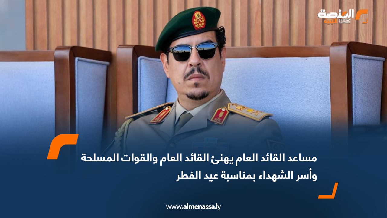 أمني وعسكري مساعد القائد العام يهنئ القائد العام والقوات المسلحة وأسر الشهداء بمناسبة عيد الفطر اقرأ المزيد » 2026-03-20