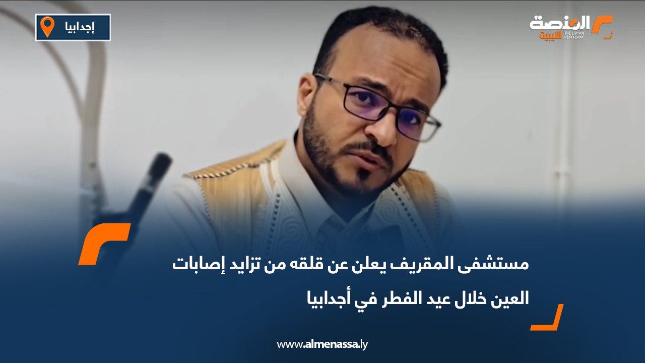 الرئيسية مستشفى المقريف يعرب عن قلقه من تزايد إصابات العين خلال عيد الفطر في أجدابيا اقرأ المزيد » 2026-03-23