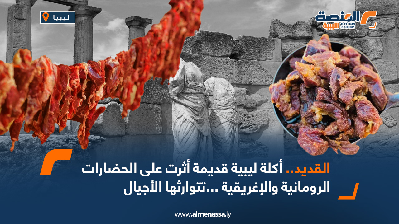 تقارير القديد.. أكلة ليبية قديمة أثرت على الحضارات الرومانية والإغريقية …تتوارثها الأجيال اقرأ المزيد » 2024-06-21