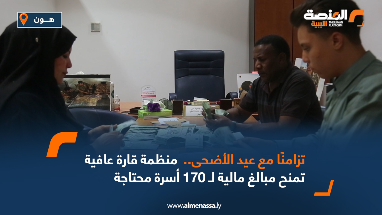 تقارير تزامنًا مع عيد الأضحى.. منظمة قارة عافية تمنح مبالغ مالية لـ 170 أسرة محتاجة اقرأ المزيد » 2024-06-13