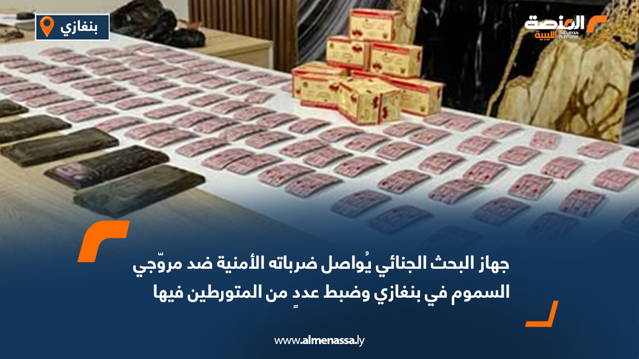 أمني وعسكري جهاز البحث الجنائي يُواصل ضرباته الأمنية ضد مروّجي السموم في بنغازي وضبط عددٍ من المتورطين فيها اقرأ المزيد » 2025-10-17