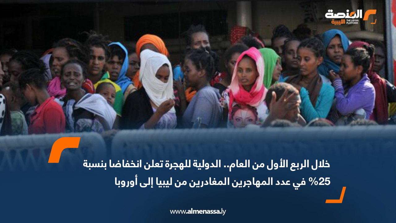 تقارير خلال الربع الأول من العام.. الدولية للهجرة تعلن انخفاضا بنسبة 25% في عدد المهاجرين المغادرين من ليبيا إلى أوروبا اقرأ المزيد » 2025-04-28