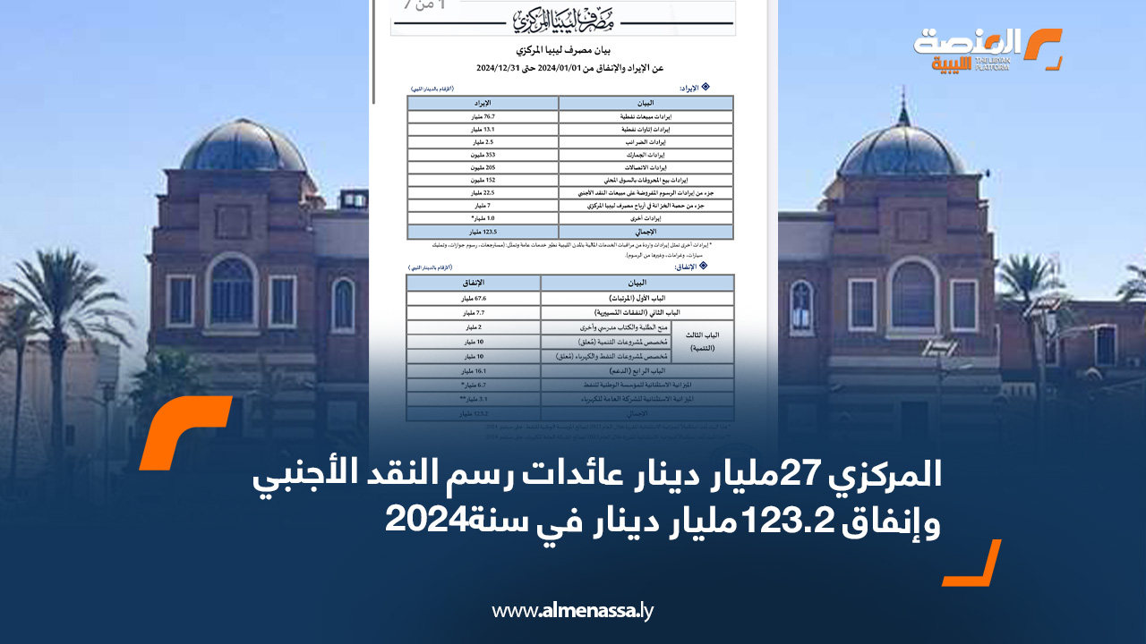 اقتصاد المركزي 27 مليار دينار عائدات رسم النقد الأجنبي وإنفاق 123.2مليار دينار في سنة2024 اقرأ المزيد » 2025-01-13