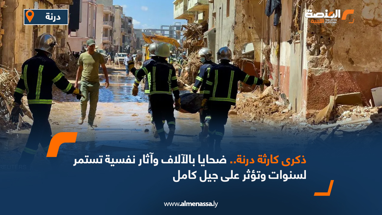 تقارير ذكرى كارثة درنة.. ضحايا بالآلاف وآثار نفسية تستمر لسنوات وتؤثر على جيل كامل اقرأ المزيد » 2024-09-06