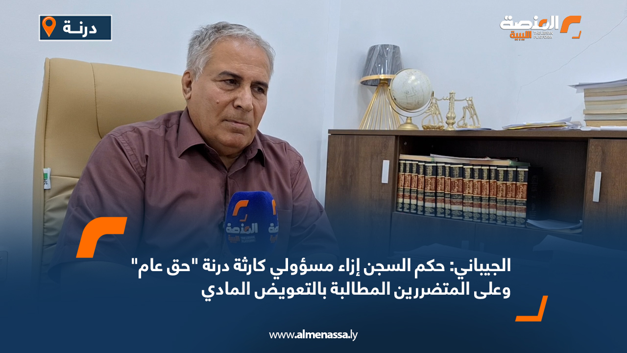 تقارير الجيباني: حكم السجن إزاء مسؤولي كارثة درنة “حق عام” وعلى المتضررين المطالبة بالتعويض المادي اقرأ المزيد » 2024-07-31