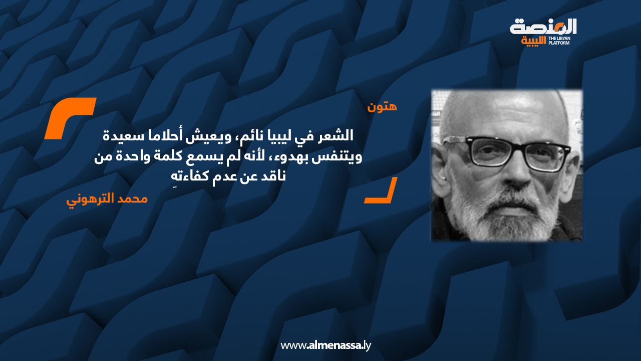 ثقافة الشعر في ليبيا نائم، ويعيش أحلاما سعيدة ويتنفس بهدوء، لأنه لم يسمع كلمة واحدة من ناقد عن عدم كفاءتهِ اقرأ المزيد » 2025-04-15