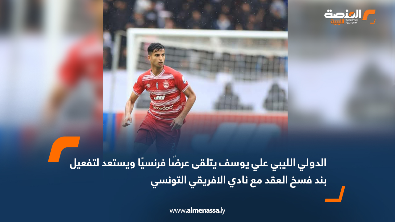 رياضة عربية الدولي الليبي علي يوسف يتلقى عرضًا فرنسيًا ويستعد لتفعيل بند فسخ العقد مع نادي الافريقي التونسي اقرأ المزيد » 2025-08-11