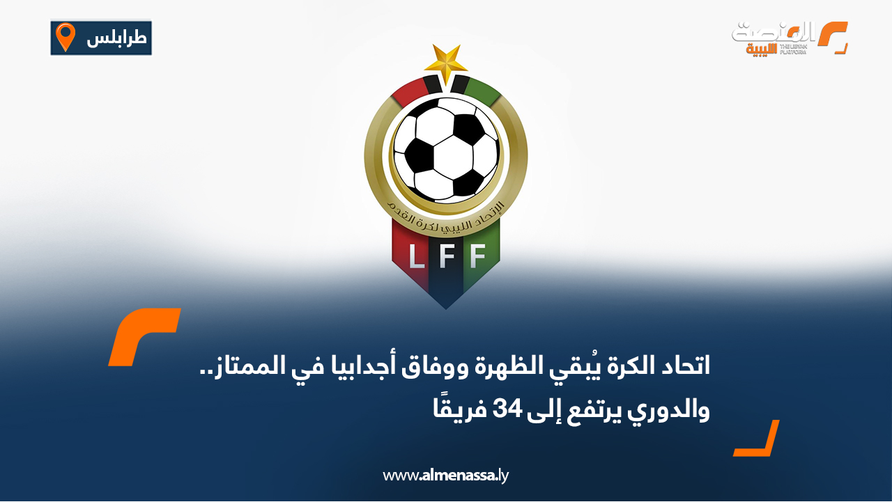 رياضة اتحاد الكرة يُبقي الظهرة ووفاق أجدابيا في الممتاز.. والدوري يرتفع إلى 34 فريقًا اقرأ المزيد » 2025-10-12