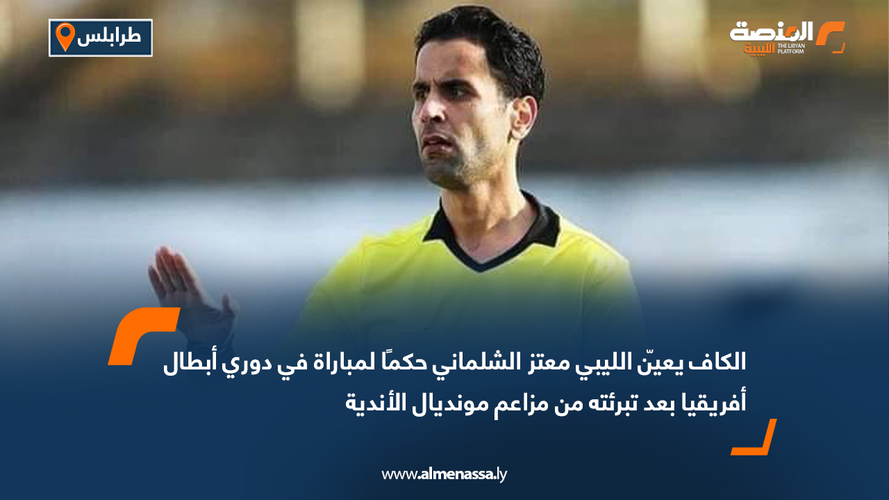 رياضة الكاف يعيّن الليبي معتز الشلماني حكمًا لمباراة في دوري أبطال أفريقيا بعد تبرئته من مزاعم مونديال الأندية اقرأ المزيد » 2025-10-08