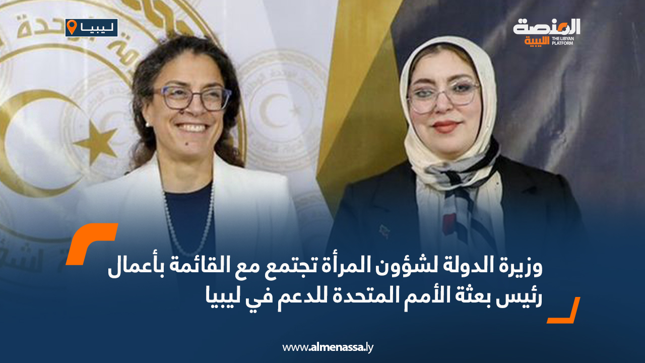 سياسة وزيرة الدولة لشؤون المرأة تجتمع مع القائمة بأعمال رئيس بعثة الأمم المتحدة للدعم في ليبيا اقرأ المزيد » 2024-05-23