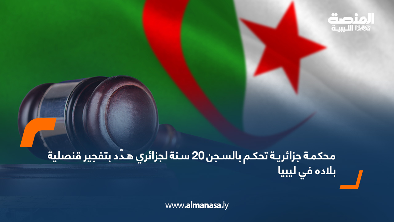 سياسة محكمة جزائرية تحكم بالسجن 20 سنة لجزائري هدّد بتفجير قنصلية بلاده في ليبيا اقرأ المزيد » 2024-04-28