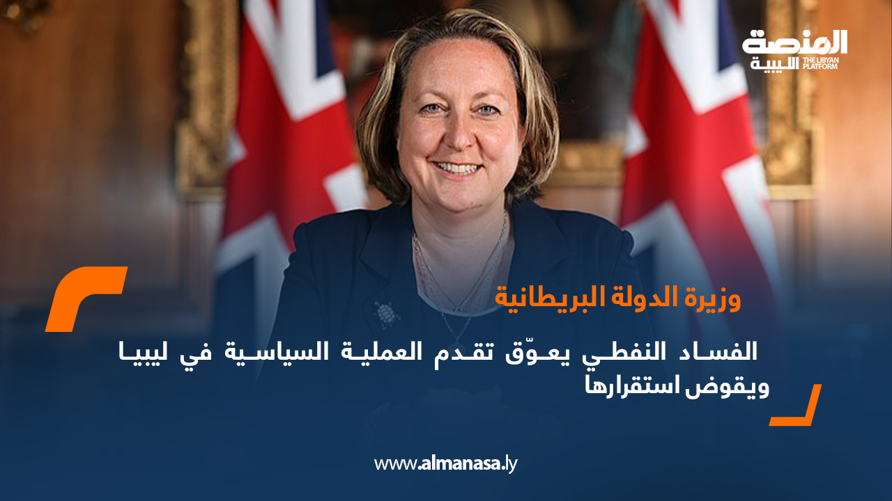 الرئيسية وزيرة الدولة البريطانية: الفساد النفطي يعوّق تقدم العملية السياسية في ليبيا ويقوض استقرارها اقرأ المزيد » 2024-04-28
