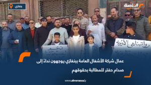 سياسة محلية عمال شركة الأشغال العامة ببنغازي يوجهون نداءً إلى الفريق أول ركن صدام حفتر للمطالبة بحقوقهم اقرأ المزيد » 2026-04-04