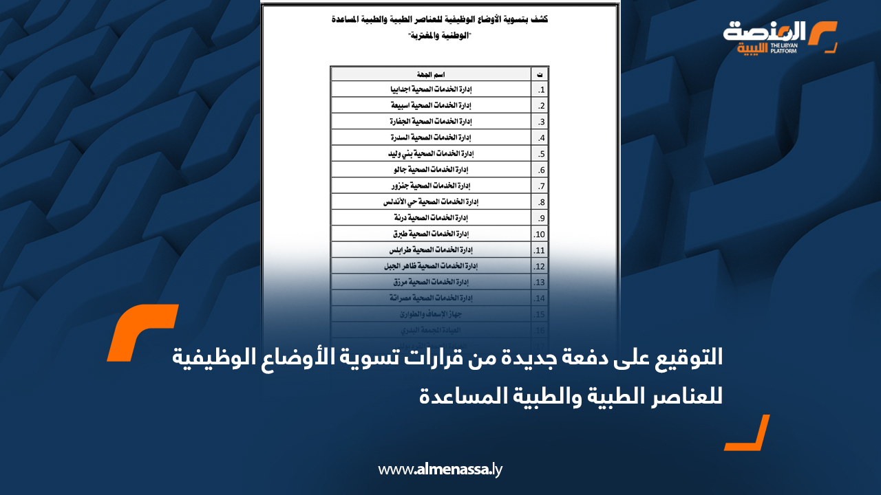 صحة التوقيع على دفعة جديدة من قرارات تسوية الأوضاع الوظيفية للعناصر الطبية والطبية المساعدة اقرأ المزيد » 2025-07-11