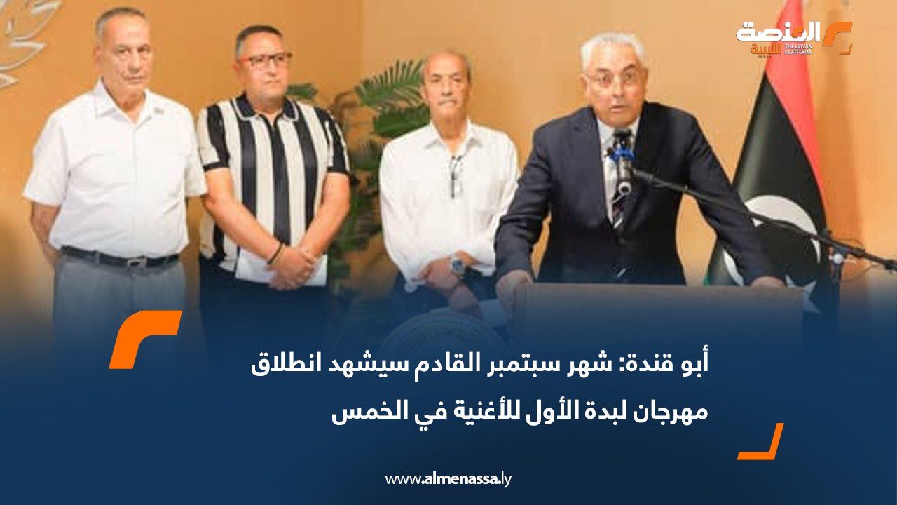 منوعات أبو قندة: شهر سبتمبر القادم سيشهد انطلاق مهرجان لبدة الأول للأغنية في الخمس اقرأ المزيد » 2025-06-18