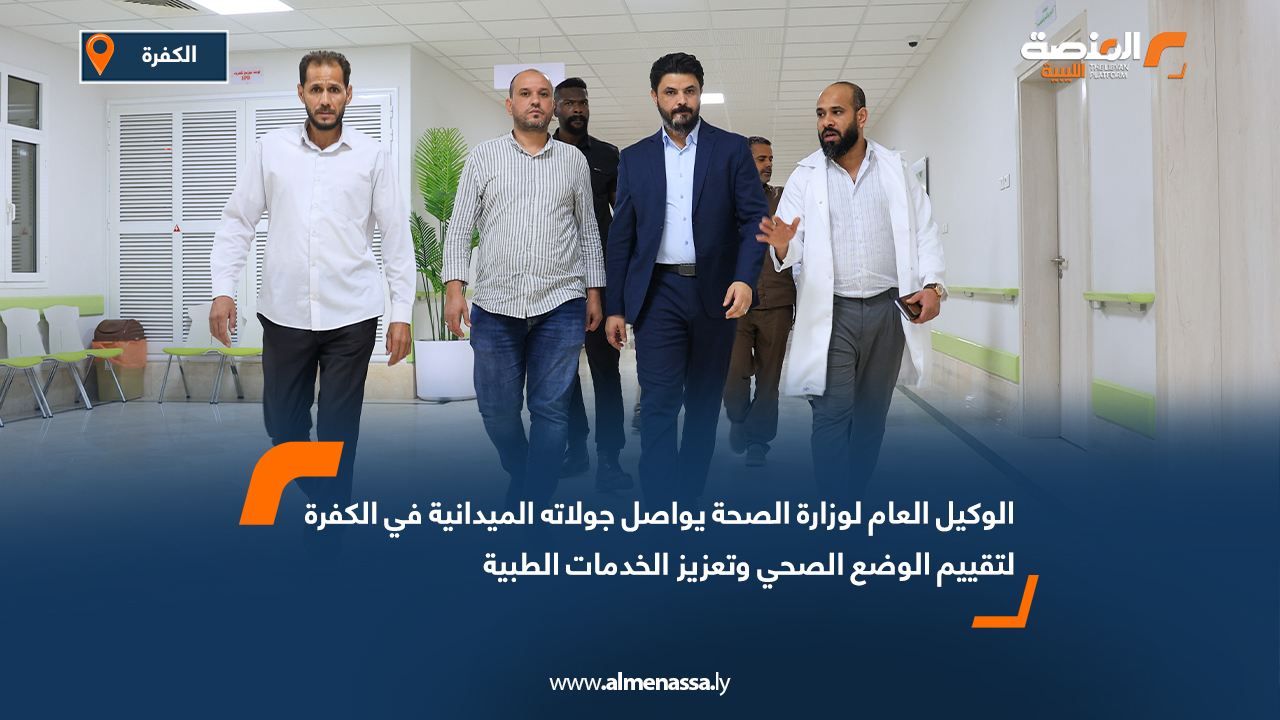 صحة الوكيل العام لوزارة الصحة يواصل جولاته الميدانية في الكفرة لتقييم الوضع الصحي وتعزيز الخدمات الطبية اقرأ المزيد » 2025-09-06