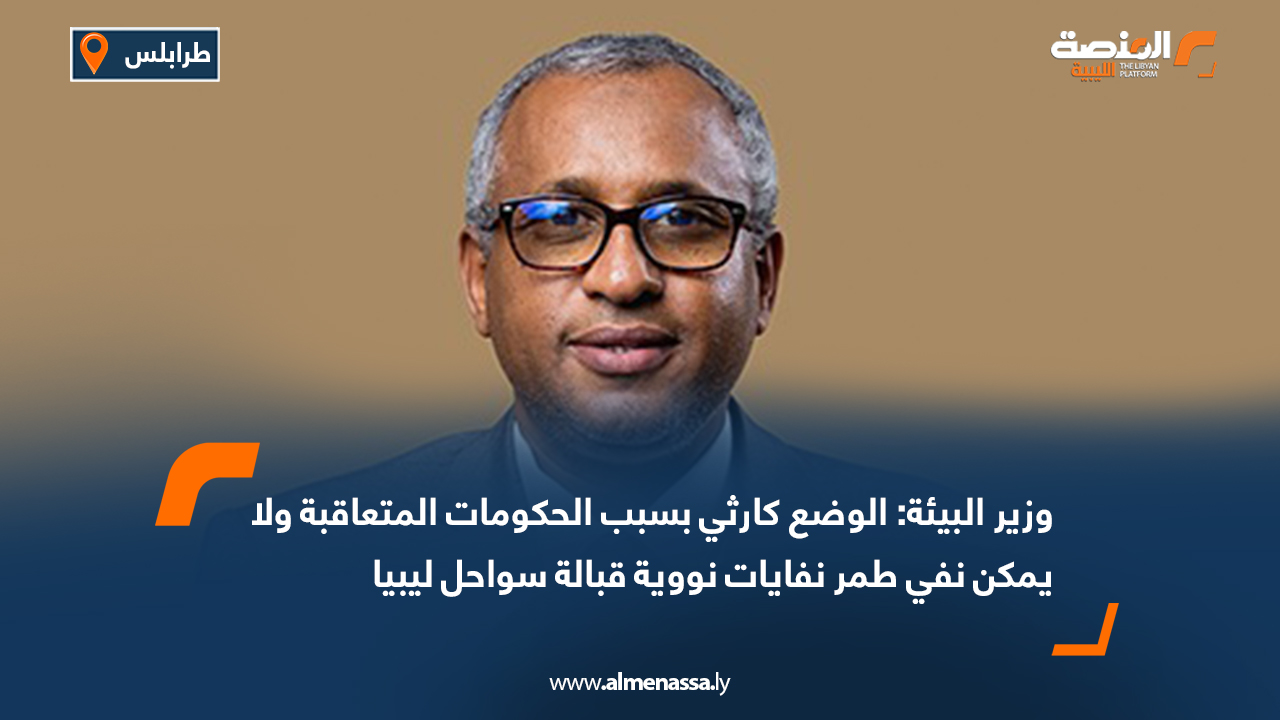 بيئة وزير البيئة: الوضع كارثي بسبب الحكومات المتعاقبة ولا يمكن نفي طمر نفايات نووية قبالة سواحل ليبيا اقرأ المزيد » 2025-08-11