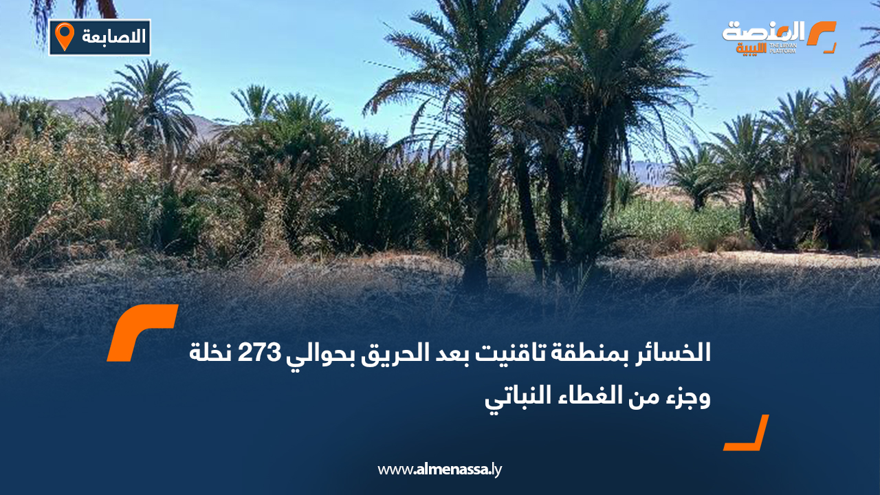 بيئة الخسائر بمنطقة تاقنيت بعد الحريق بحوالي 273 نخلة وجزء من الغطاء النباتي اقرأ المزيد » 2025-07-21