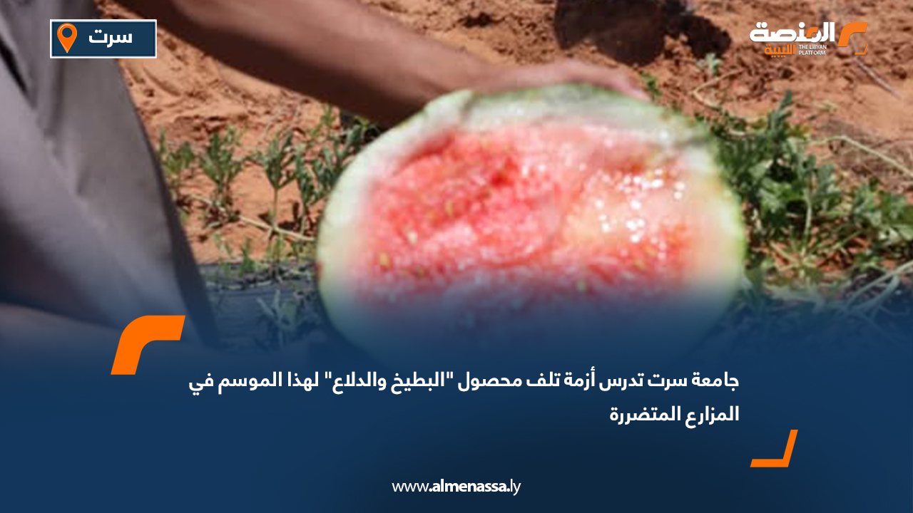 اقتصاد محلي جامعة سرت تدرس أزمة تلف محصول “البطيخ والدلاع” لهذا الموسم في المزارع المتضررة اقرأ المزيد » 2025-07-01