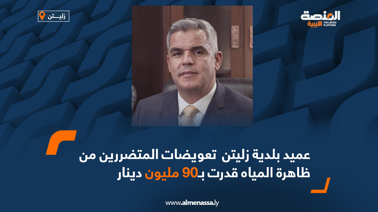 بيئة عميد بلدية زليتن: تعويضات المتضررين من ارتفاع المياه قدرت بـ 90 مليون دينار اقرأ المزيد » 2024-05-13