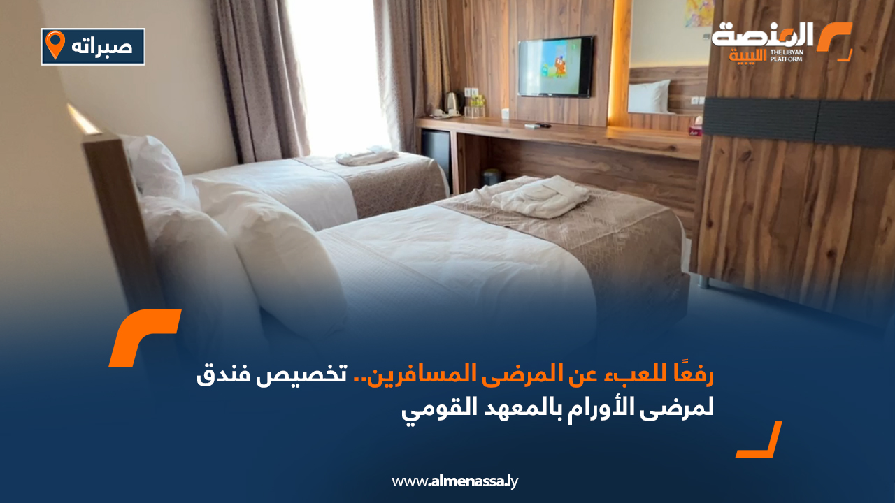 تقارير رفعًا للعبء عن المرضى المسافرين.. تخصيص فندق لمرضى الأورام بالمعهد القومي صبراتة اقرأ المزيد » 2024-06-26