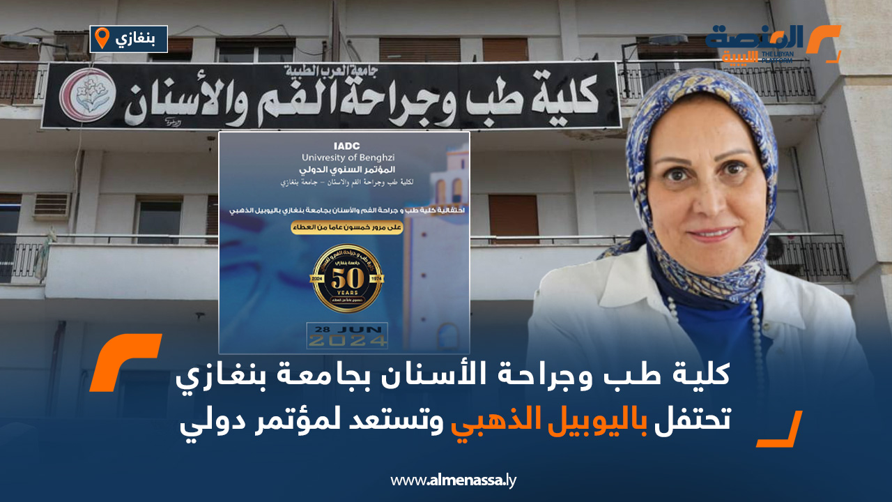 صحة كلية طب وجراحة الأسنان بجامعة بنغازي تحتفل باليوبيل الذهبي وتستعد لمؤتمر دولي اقرأ المزيد » 2024-06-26