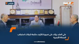 اقتصاد علي العابد يؤكد على ضرورة تكثيف متابعة شركات استجلاب العمالة الأجنبية اقرأ المزيد » 2025-03-17