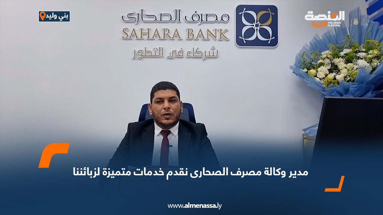 اوضح مدير وكالة مصرف الصحارى ببلدية بني وليد عادل امبارك، في تصريح للمنصة الليبية، الخدمات التي تقدمها وكالة المصرف لزبائنها، عقب افتتاحها الأيام الماضية بالبلدية.