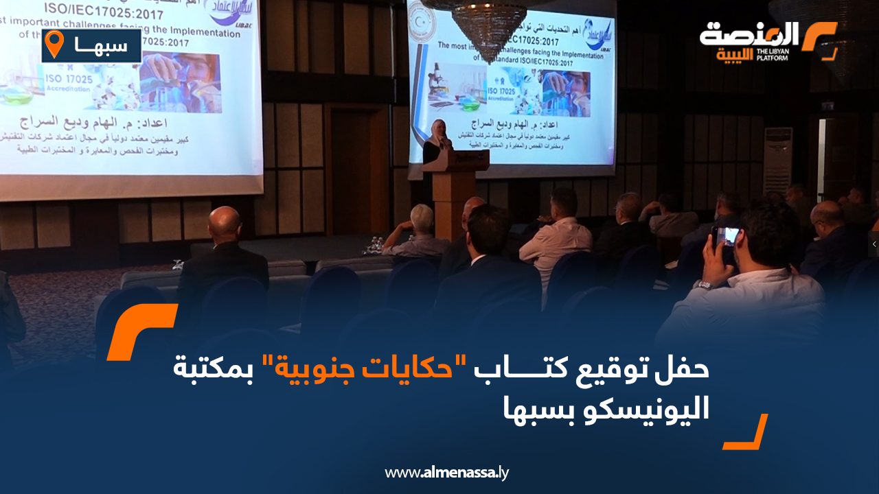 شهدت مكتبة اليونيسكو بمدينة سبها حفل توقيع كتاب بعنوان “حكايات جنوبية”، وهو عبارة عن تجمعية لنصوص أدبية لكتاب هواة من الجنوب، وقع تدريبهم وصقل مواهبهم غبر ورش تدريبية متخصصة في الكتابة الأدبية نفذتها منظمة فزان ليبيا، وحضر الحفل لفيف من الكتاب والأدباء والمهتمين بمجالات القصة القصيرة والشعر.