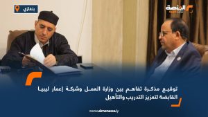 محليات توقيع مذكرة تفاهم بين وزارة العمل وشركة إعمار ليبيا القابضة لتعزيز التدريب والتأهيل اقرأ المزيد » 2025-03-27