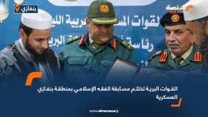 أمني وعسكري القوات البرية تختتم مسابقة الفقه الإسلامي بمنطقة بنغازي العسكرية اقرأ المزيد » 2025-03-27