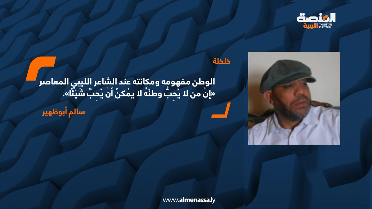 وختاما فقد حظي الوطن بحدوده الجغرافية المعروفة بمكانة خاصة لدى الشاعر الليبي الإنسان الذي غالبا ما نجد تعبيره عن هذا الحب لهذا الوطن حباً نقيا ومتجرداً من المصلحة، وبعيداً عن تحقيق المنافع الشخصية والمطامع الزائفة الزائلة، ولأن الشاعر كان صادقاً مع نفسه، فقد كان في الغالب موفقاً في نقل مشاعره وأحاسيسه حبا وارتباطا بالوطـن للمتلقي، هذا المتلقي الذي يحب وطنه أيضا وبالقدر نفسه، فكان من السهل عليه تذوق قصائد الشاعر، فاستمتع واحتفى بها وتفاعل معها، لأنها تمس وجدانه، ولأنها تتناول في مفردة تعني له الكثير فتغنى بفرح وشجن لوطن يحبه، وطن اسمه ليبيا.