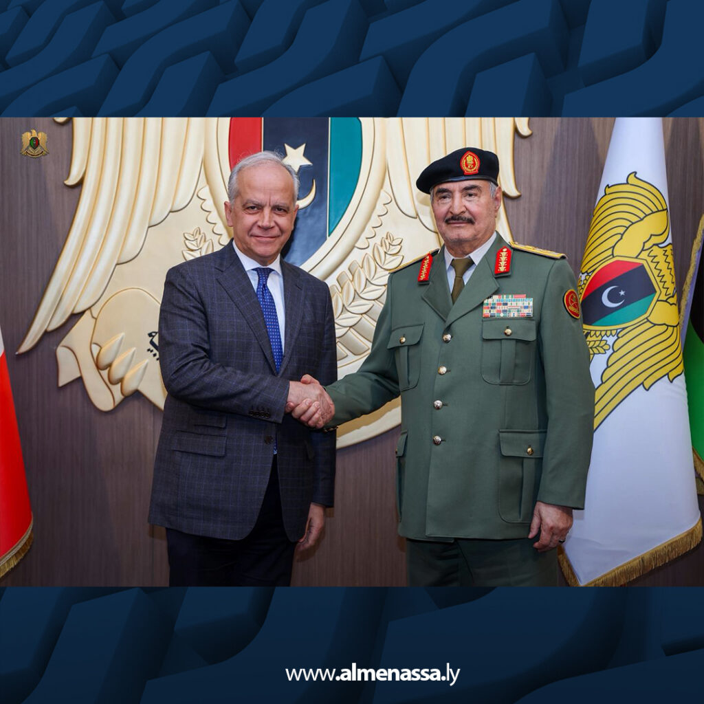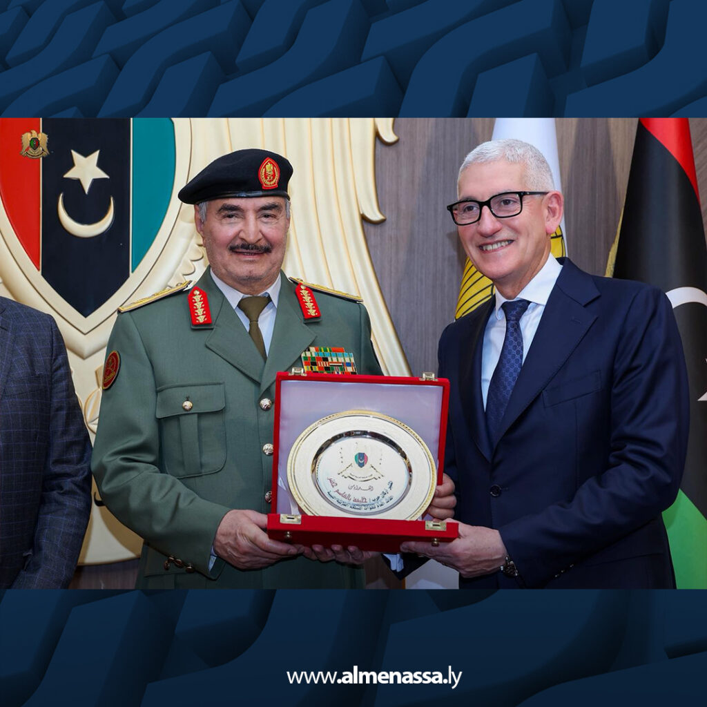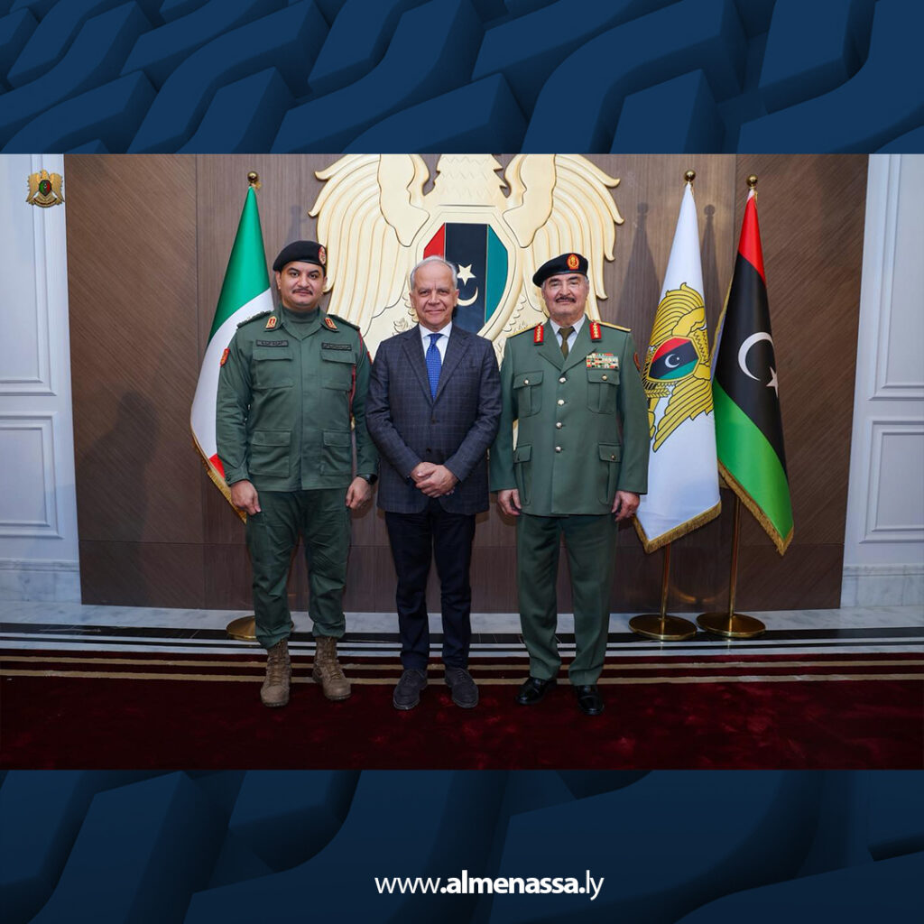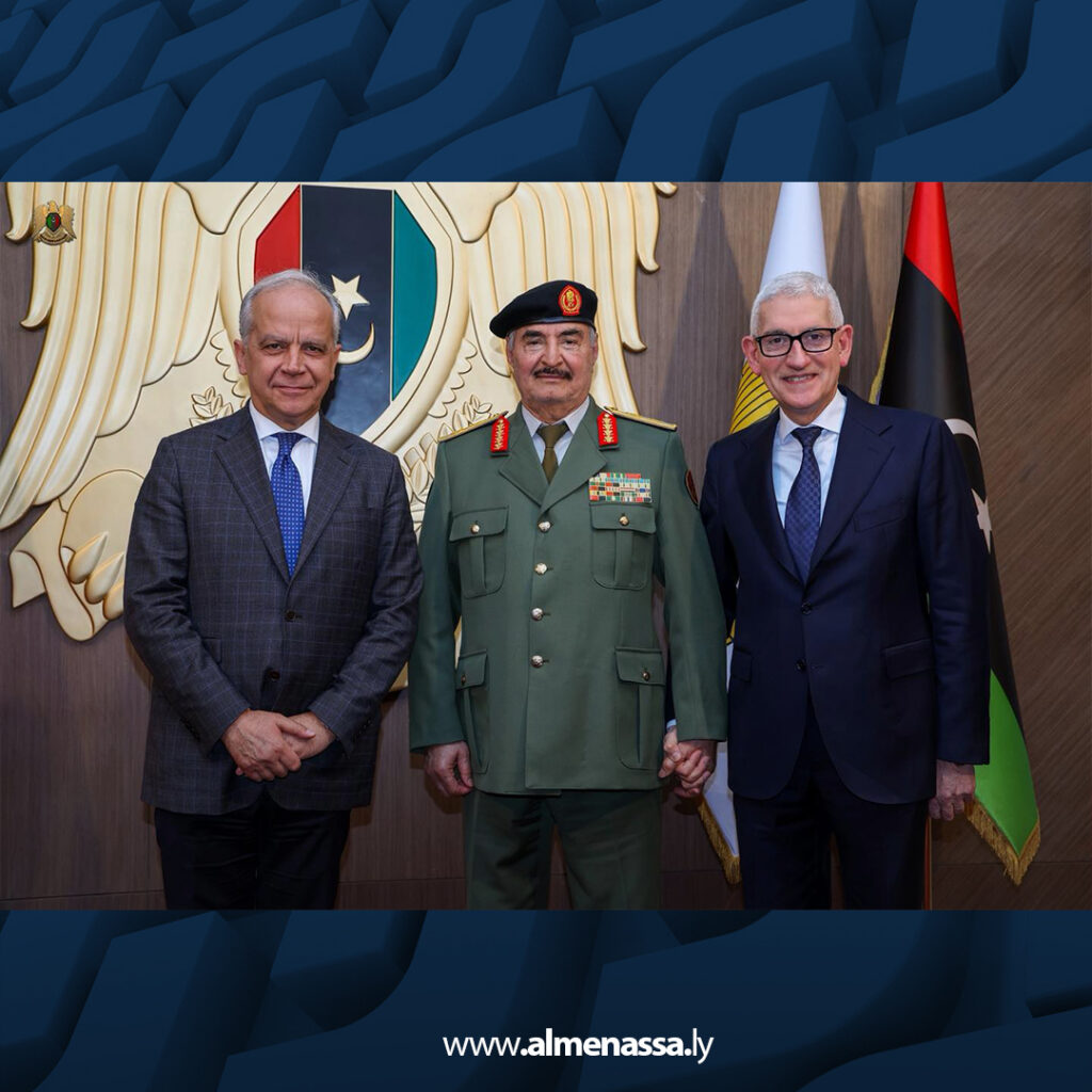 استقبل القائد العام للقوات المسلحة، المشير “خليفة حفتر”، وفدا رفيع المستوى من الجمهورية الإيطالية برئاسة وزير الداخلية الإيطالي “ماتيو بيانتيدوسي”، ورئيس جهاز المخابرات الإيطالي، “جيوفاني كارفيلي”، وذلك في مكتبه بمقر القيادة العامة – بنغازي.