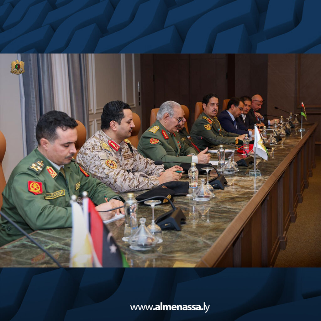وجرى اللقاء بحضور نائب القائد العام الفريق أول ركن صدام حفتر، ورئيس الأركان العامة، الفريق أول ركن خالد حفتر، والأمين العام للقيادة العامة الفريق أول خيري التميمي، ومساعد القائد العام للقوات المسلحة الفريق ركن باسم محمد البوعيشي، ومدير مكتب القائد العام الفريق ركن أيوب بوسيف.