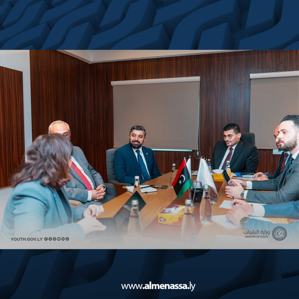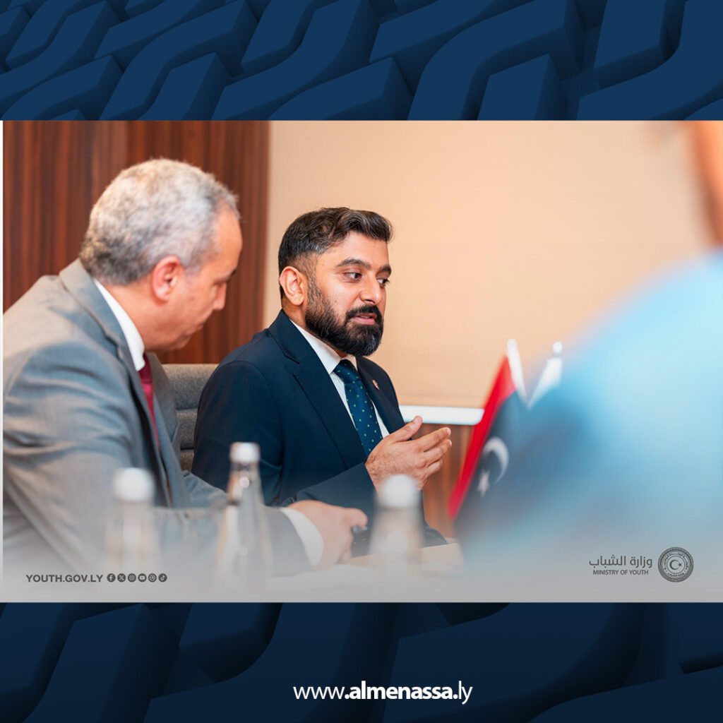 عقد وزير الشباب بحكومة الوحدة الوطنية، المهندس هيثم الزحّاف، اجتماع مع الملحق الثقافي بسفارة المملكة المتحدة لدى ليبيا، ومدير المركز الثقافي البريطاني، زاهد محمود، بحضور عدد من مديري الإدارات والمكاتب بالوزارة.