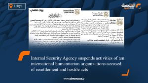 Libya Internal Security Agency suspends activities of ten international humanitarian organizations accused of resettlement and hostile acts Read More» 2025-04-05